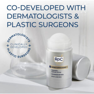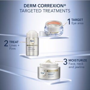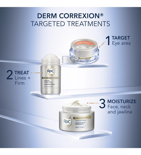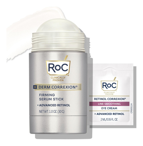 Soro firmador de retinol avançado RoC Derm Correxion com antioxidantes para apertar e firmar visivelmente as rugas e as linhas de riso, pacote de creme para os olhos com retinol — TRATE, APERTE E LEVANTE PARA UMA PELE VISIVELMENTE MAIS FIRME: alveje o rosto, pescoço, peito e dorso das mãos com esta fórmula fácil de usar e de rápida absorção. Desenvolvido em parceria com dermatologistas, este sérum reafirmante desliza sobre a pele de forma clara e uniforme para obter resultados poderosos. – RESULTADOS COMPROVADOS: uma fórmula concentrada com antioxidantes avançados de retinol + para reduzir visivelmente as linhas e aumentar a elasticidade. O THPE reafirmante funciona para aumentar a firmeza da pele, resultando em uma aparência com contornos naturais. Clinicamente comprovado que suaviza instantaneamente a pele. EM 4 SEMANAS: 94% tinham uma pele visivelmente mais firme. – FÓRMULAS ANTIENVELHECIMENTO: Se você está procurando uma solução para rugas profundas, linhas finas, olheiras, pés de galinha, tom de pele irregular ou pele seca, temos a fórmula antienvelhecimento ideal para você. Testado dermatologicamente. Sem parabenos. Não comedogênico. Hipoalergênico. Sem fragrância. Absorção rápida. – CIÊNCIA E BELEZA: Produzimos uma ampla variedade de produtos e tratamentos para cuidados com a pele, incluindo hidratantes diários com SPF, ácidos hialurônico e niacinamida, limpadores faciais, séruns de vitamina C, regimes de retinol para tons de pele e rugas e cremes para debaixo dos olhos, endurecedores de pescoço, decote e muito mais. – INOVAÇÃO EM CUIDADOS COM A PELE: Nossos produtos são reconhecidos por líderes e dermatologistas do setor de beleza por sua melhor eficácia. Continuamos pesquisando e inovando novas fórmulas para uma pele mais saudável.