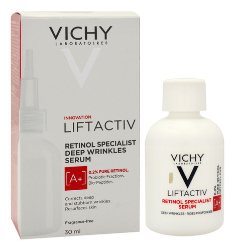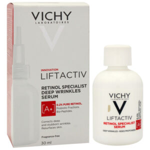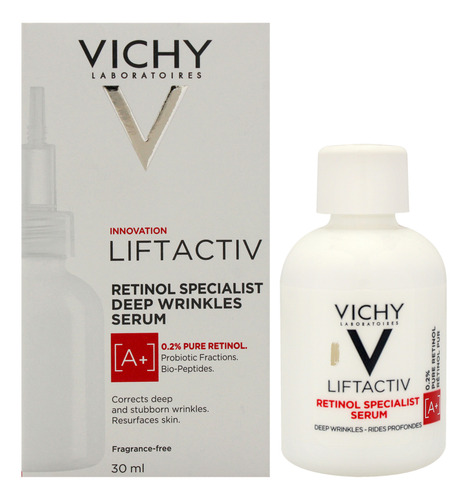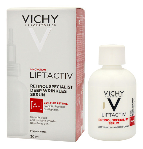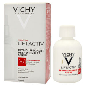 Experimente o poder do retinol com o soro de retinol puro LiftActiv para rugas. Nossa fórmula poderosa contém 0,2% de retinol puro para reduzir as rugas, mesmo as profundas, para 100% dos participantes de nosso estudo clínico de 5 meses. O sérum de retinol puro firma e suaviza enquanto reduz as manchas escuras e melhora o brilho. Certificado por dermatologistas, este sérum de retinol puro também contém peptídeos, fermento prebiótico e não contém fragrâncias, o que o torna a melhor escolha para transformar sua pele.