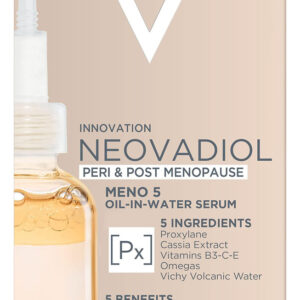 Sérum de neovadiol Vichy para peri e pós-menopausa | Sérum antienvelhecimento para reduzir rugas e manchas escuras | Testado dermatologicamente | 1,01 fl. O soro Oz – Neovadiol Meno 5 é alimentado por uma sinergia de ingredientes, incluindo proxilano, extrato de cássia, vitaminas B3-C-E, ômegas 6-9 e água vulcânica de Vichy. – Esta formulação ajuda a reabastecer a pele e revelar uma tez radiante e uniforme. Sua pele sempre o protegeu; cuide de sua pele durante a próxima fase da vida. – Melhora a aparência das manchas escuras, reduz a aparência das rugas, firma visivelmente a pele e aumenta a hidratação e o brilho – Aplique várias gotas do soro Meno 5 após a limpeza e sob um hidratante. Agite bem antes de usar para misturar a fórmula bifásica de óleo em água – Vire o produto de cabeça para baixo e aperte a base da ponta do aplicador para dispensar a fórmula. Use Meno 5 Serum duas vezes ao dia por pelo menos 8 semanas para obter melhores resultados