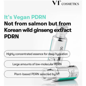 VT Cosmetics PDRN 100 Essence 1,01 fl oz – [PDRN à base de plantas] Nossa essência PDRN é proveniente exclusivamente do ginseng coreano, fornecendo uma escolha distinta de ingredientes, em vez dos derivados de peixe comumente usados. – [Elegância para o dia todo] Experimente nossa essência sem perfume e de rápida absorção, perfeita para uso a qualquer hora do dia ou da noite. Proporciona brilho duradouro e melhora a elasticidade da pele sem qualquer fragrância. – [Charme sem idade] Projetada especialmente para todos de 20 a 50 anos, nossa essência mantém o brilho natural da pele, garantindo uma aparência duradoura e vibrante. – [Cuidado intensivo] A essência PDRN da VT oferece uma solução PDRN altamente concentrada de 100.000 ppm para nutrir profundamente e melhorar o brilho natural da pele. – [Luminosa Hidratação] Nossa essência, com sua textura suave e leitosa, não apenas forma uma camada hidratante brilhante na pele, mas também ajuda a melhorar a elasticidade da pele, conferindo um efeito de brilho aquático semelhante ao de um spa e hidratando a pele a cada aplicação.