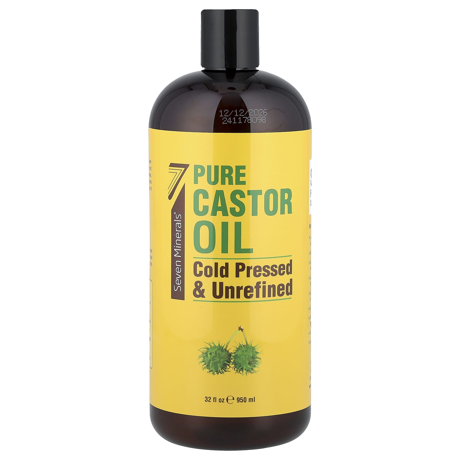 Seven Minerals Óleo de Rícino Puro Prensado a Frio e Não Refinado Sem Perfume 950 ml (32 fl oz) – Seven Minerals Banho e Cuidados Pessoais Cuidados com o Corpo Óleos corporais e de massagem Óleo de Rícino.