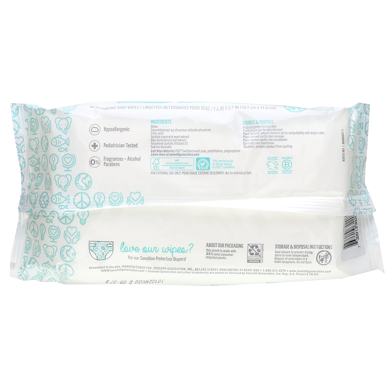 Seventh Generation Lenços umedecidos de Limpeza e Proteção para Bebês 64 lenços umedecidos – Seventh Generation Bebês e Crianças Fraldas Lenços Umedecidos para Bebês.