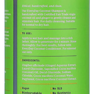 Shampoo de coco Alaffia EveryDay — cabelos normais a secos, ajuda a limpar suavemente o couro cabeludo e o cabelo de impurezas com óleo de gengibre e coco, comércio justo, puramente de coco, 32 fl oz — XAMPU DE COCO. O Shampoo Ultra Hidratante Alaffia EveryDay Coconut é preparado com óleo de coco virgem certificado de comércio justo de nossas cooperativas no Togo, África Ocidental e gengibre africano. – HIDRATANTE E REVIGORANTE. Limpe, hidrate e proteja o cabelo enquanto usa este shampoo rico em nutrientes, suave e eficaz. O óleo de coco, rico em vitamina E, retém a umidade e o gengibre revigora o couro cabeludo, promovendo o crescimento do cabelo. Para uso diário em cabelos normais a secos. Aplique nos cabelos molhados e massageie até obter uma espuma rica. Enxágue bem e condicione com o condicionador de coco Alaffia EveryDay. – PURAMENTE COCO. O shampoo de coco da Alaffia é feito à mão com óleo de coco virgem certificado de comércio justo e extrato de gengibre para limpeza e hidratação profundas. – LIMPO, DE COMÉRCIO JUSTO, SEM SULFATO. Feito com amor e respeito. Os produtos Alaffia contêm “NO” sulfatos, parabenos, ftalatos, silicones, óleo mineral, cor artificial ou fragrância sintética. Orgulhosamente livre de crueldade. – A Alaffia é uma empresa social com a missão de criar um futuro mais sustentável e equitativo. Nossas cooperativas lideradas por mulheres na África Ocidental produzem ingredientes de comércio justo com base na tradição. Quando você escolhe nossos produtos artesanais, você se junta a nós no apoio à educação, ao cuidado materno e à sustentabilidade ambiental.