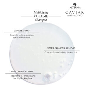 Shampoo antienvelhecimento e multiplicador de volume Alterna Caviar, 8,5 ml (pacote com 1) — ajuda a restaurar a plenitude natural do cabelo com o complexo marinho de preenchimento para aumentar instantaneamente o volume. Ideal para cabelos finos e finos – Um limpador suave para volume multiplicado da raiz às pontas Perfeito para cabelos lisos, ondulados, encaracolados, enrolados e bem enrolados – Formulado com um luxuoso extrato de caviar, rico em ácidos graxos ômega, vitaminas e minerais para ajudar a defender e proteger contra os fatores que fazem com que o cabelo pareça e pareça mais velho: envelhecimento físico, químico e natural – Livre de adição de SLS/SLES, parabenos e ftalenos Ácidos, DEA/CHÁ e corantes sintéticos. Adequados para cabelos tingidos. Laurilsulfato de sódio, laurilsulfato de sódio — Clinicamente comprovado que fornecem instantaneamente mais plenitude e volume, quando usados como regime com o condicionador de volume múltiplo antienvelhecimento Caviar e o Styling Mist