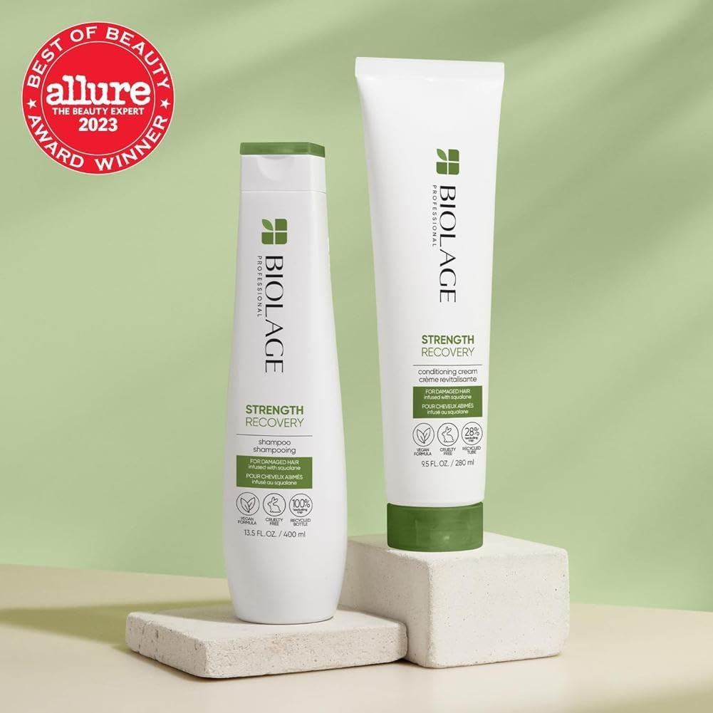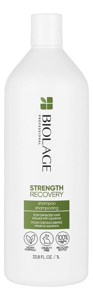 Shampoo Biolage Strength Recovery — Limpa suavemente e reduz a quebra de cabelos danificados e sensibilizados, vegano, livre de crueldade — Shampoo fortalecedor: este shampoo de limpeza suave para cabelos danificados ajuda a reduzir a quebra, ao mesmo tempo em que limpa as impurezas do cabelo e protege contra danos futuros — Benefícios: Este shampoo confere maciez e maciez ao cabelo enquanto nutre o cabelo, que fica 3 vezes mais forte após um uso, com 3 vezes menos quebras. Benefícios adicionais: este produto é vegano, livre de crueldade e em uma garrafa 100% reciclada. Adora fibra forte ou dose de queratina? Experimente o novo Strength Recovery para ajudar a reparar todos os tipos de cabelos danificados. – Sistema de recuperação de força: ao usar o regime completo de recuperação de força de xampu, creme condicionador e spray leave-in, obtenha cabelos mais fortes e saudáveis, livres de danos, com 82% mais capacidade de gerenciamento – Uso sugerido: massageie nos cabelos molhados e faça uma espuma rica. Enxágue bem. Para obter melhores resultados, aplique o creme condicionador Strength Recovery e o spray reparador de força