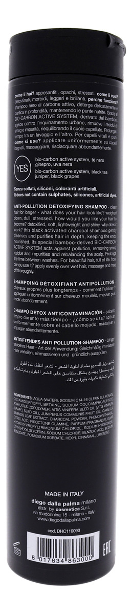 Este shampoo desintoxicante antipoluição de carvão vegetal que protege e elimina as toxinas do cabelo devido à poluição. Este shampoo com carbono preto, deterge suavemente a pele e purifica mantendo as pontas macias e hidratadas.