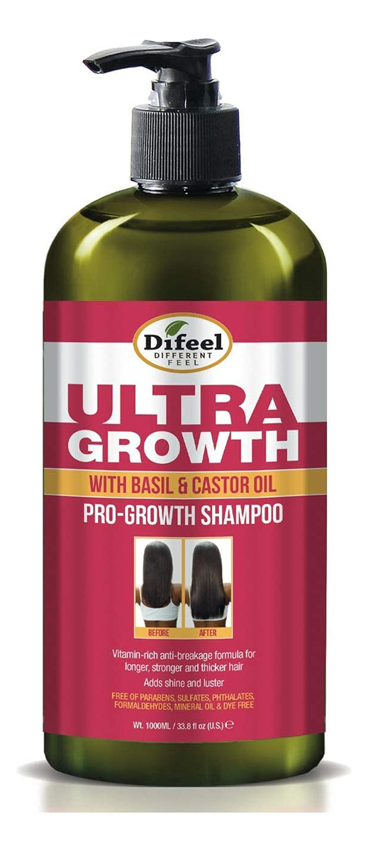 Shampoo Difeel Ultra Growth com óleo de manjericão e rícino – 33,8 onças, sem sulfato para promover o crescimento do cabelo