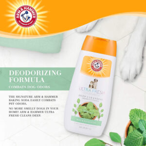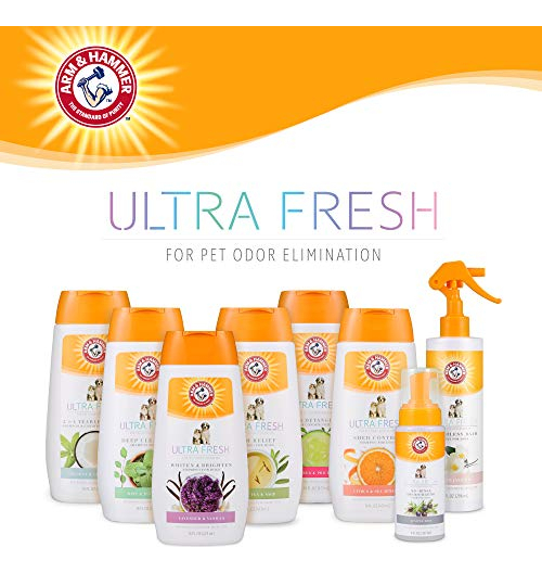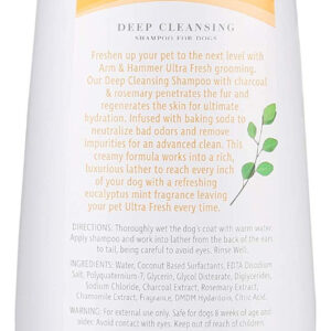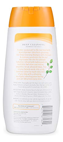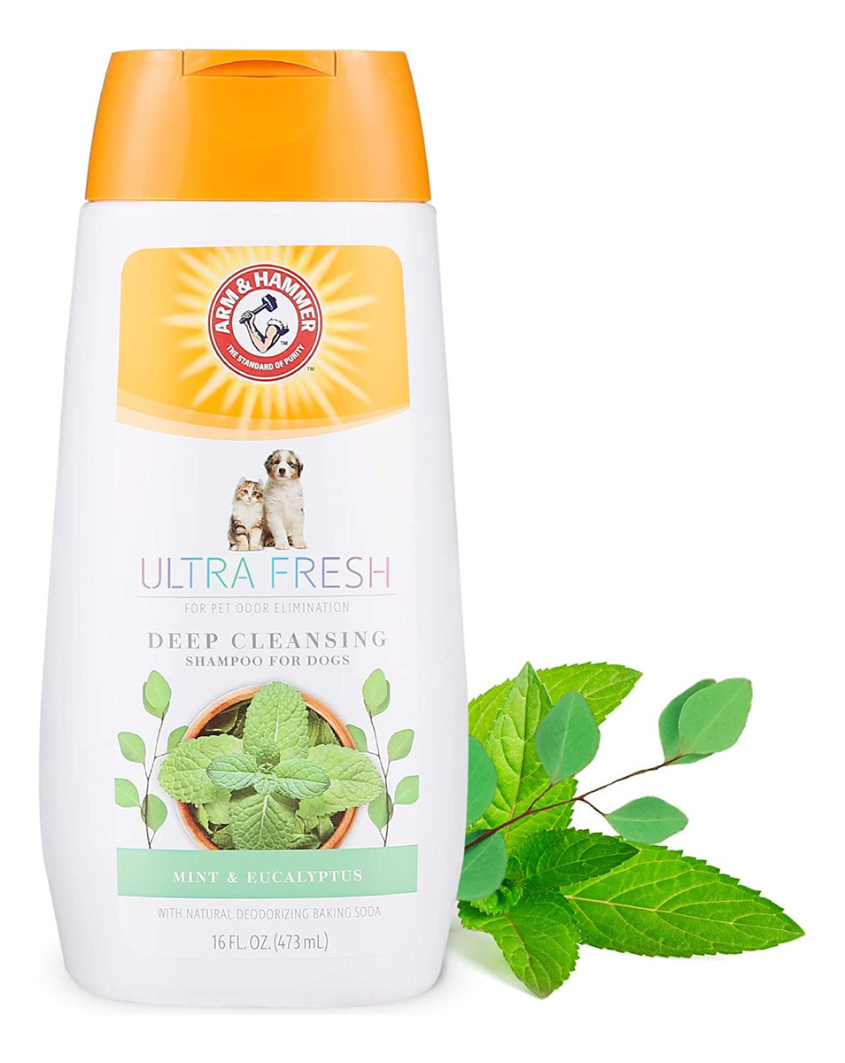 Refresque seu animal de estimação para o próximo nível com o tratamento Arm & Hammer Ultra Fresh. Nosso shampoo de limpeza profunda 2 em 1 em hortelã de eucalipto penetra no pelo e regenera a pele para uma hidratação máxima. Feito com carvão e alecrim, este shampoo para cães é infundido com bicarbonato de sódio para neutralizar os maus odores e remover as impurezas para uma limpeza avançada. A fórmula cremosa deste shampoo para cães forma uma espuma rica e luxuosa para atingir cada centímetro de seu cão com uma fragrância refrescante de eucalipto e menta, deixando-o sempre ultra fresco. INSTRUÇÕES: Molhe bem a pelagem do cachorro com água morna. Aplique o shampoo e faça espuma da parte posterior das orelhas até a cauda, tomando cuidado para evitar os olhos. Enxágue bem. INGREDIENTES: Água, surfactantes à base de coco, sal dissódico EDTA, poliquatérnio-7, glicerina, diestearato de glicol, diglicéridos, cloreto de sódio, extrato de carvão vegetal, extrato de alecrim, extrato de camomila, fragrância, hidantoína DMDM, ácido cítrico. AVISOS: Somente para uso externo. Seguro para cães com 8 semanas de idade ou mais. Evite o contato com os olhos. Mantenha fora do alcance das crianças.