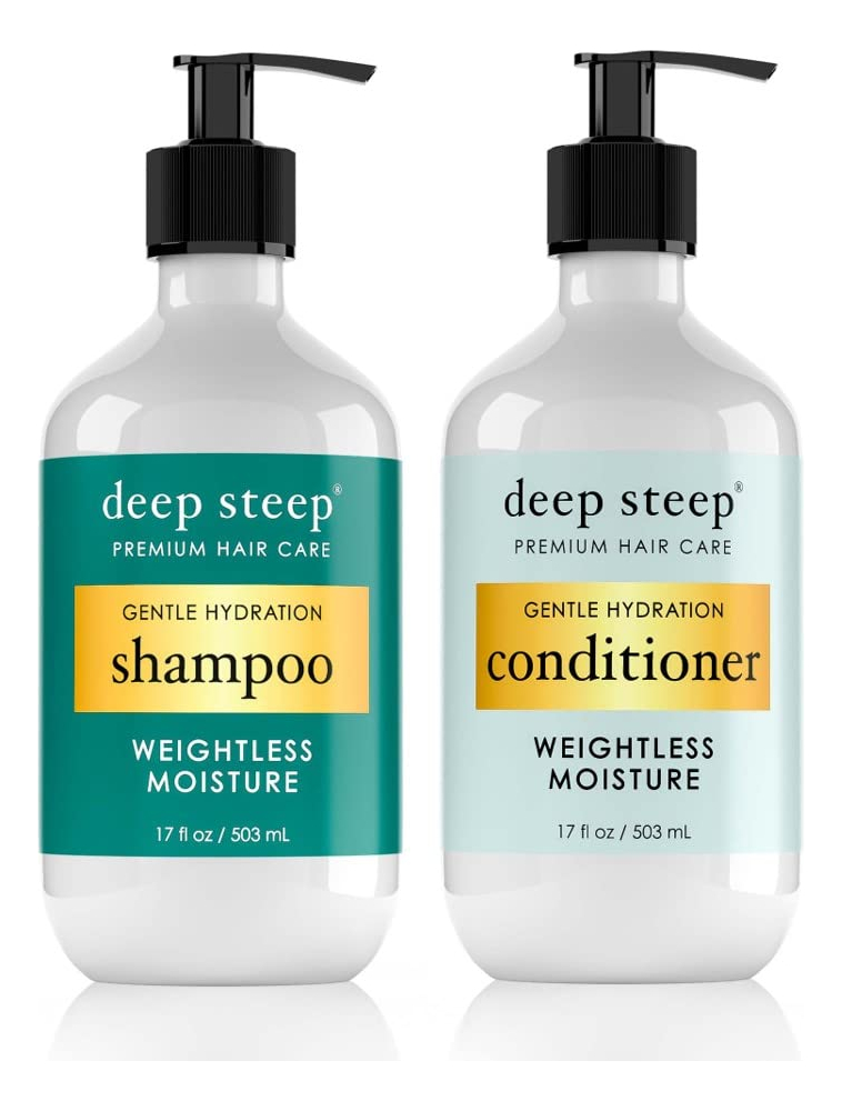 Hidratação suave! Suaviza levemente os cabelos secos e ressecados. Aplique nos cabelos molhados e esfregue suavemente até formar espuma. Repita se necessário. Para obter melhores resultados, siga com o condicionador de umidade Weightless. A espuma ultra-rica do nosso Shampoo Hidratante Weightless reabastece suavemente os cabelos secos e quebradiços. O óleo de argão marroquino e o azeite de oliva virgem infundem cada mecha com umidade para hidratar sem deixar o cabelo pesado. Os limpadores à base de plantas fornecem uma limpeza suave, mas completa, dos óleos orgânicos de argão e oliva para hidratação profunda. O zimbro e a framboesa orgânicos condicionam o cabelo e promovem um couro cabeludo saudável. O shampoo leve ajuda a reter o movimento natural dos cabelos. Fragrância leve e revigorante. Instruções: Aplique nos cabelos molhados e espalhe suavemente até formar espuma. Repita se necessário. Para obter melhores resultados, siga com o condicionador de umidade Weightless. Sobre a Deep Steep: Todos os produtos da Deep Steep são isentos de silicones, SLS, parabenos, ftalatos, propilenoglicol, óleo mineral, petrolato, fenoxietanol, corantes, ingredientes de origem animal e centenas de outros ingredientes inaceitáveis encontrados nos produtos da concorrência. Certificado Leaping Bunny. Vegano. Todos os produtos Deep Steep são formulados e fabricados pela nossa empresa-mãe, a Royal Labs. Há mais de 35 anos, a Royal Labs é fabricante líder de produtos premium de beleza natural, localizada em Charleston, Carolina do Sul. – A espuma ultra-rica do nosso shampoo Weightless Moisture repõe suavemente os cabelos secos e quebradiços. O óleo de argão marroquino e o azeite de oliva virgem infundem cada mecha com umidade para hidratar sem deixar o cabelo pesado. – Limpadores vegetais fornecem uma limpeza suave, mas completa – Zimbro e framboesa orgânicos condicionam o cabelo e promovem um couro cabeludo saudável. – Shampoo leve ajuda a reter o movimento natural dos cabelos. – Fragrância leve e revigorante.