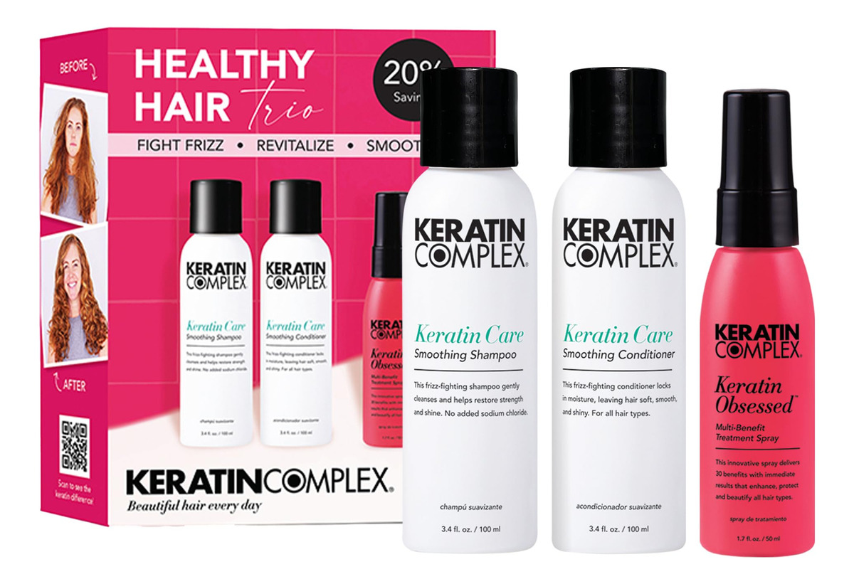 Complexo de queratina – Trio para cabelos saudáveis – Shampoo e condicionador para cuidados com queratina, 3,4 fl oz e spray de tratamento multibenefícios queratina obcecado por queratina, 1,7 fl oz – Este kit ideal para viagens combate o crespo e oferece a máxima suavidade para todos os tipos de cabelo. – Shampoo e condicionador suavizantes Keratin Care: combate o crespo e proporciona maciez a todos os tipos de cabelo – Spray de tratamento multibenefícios Keratin Care: pulverize nosso leave-in #1 e descubra cabelos sedosos, brilhantes e mais vibrantes instantaneamente!