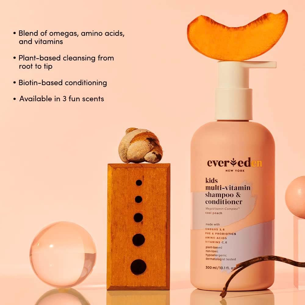 All-in-one formula with MegaVitamin Complex creates a healthy foundation for kids scalp and hair. Formulated with both biotin and amino acids to strengthen and condition hair, while rice protein and ginseng extract provide a gentle, yet long-lasting cleansing effect. With fruity Cool Peach scent. – MULTI-VITAMIN STRENGTH: Our MegaVitamin Complex contains a complete blend of clean ingredients, essential omegas, amino acids, and vitamins to strengthen and condition hair. – GENTLE CLEANSING: Powered by plant-based ingredients like maiden hair fern and wild thyme extracts, this kids shampoo and conditioner 2 in 1 provides a gentle, yet long lasting cleanse, removing buildup and effectively cleansing hair from root to tip. – DEEP CONDITIONING: Formulated with both biotin and amino acids to strengthen and condition hair, this kids conditioner leaves hair feeling soft and looking smooth and shiny. Made safely for children and toddlers hair. – COOL PEACH SCENT: fragrance features top notes of delightful anis heart notes of comforting Peach & Violet and base notes of softly sweet darjeeling tea. Formulated with all clean and gentle hair care ingredients. – MADE IN USA OF U.S. AND IMPORTED INGREDIENTS: Our products are created by doctors and dermatologist tested so you can trust that they are non-toxic, hypoallergenic and clean.