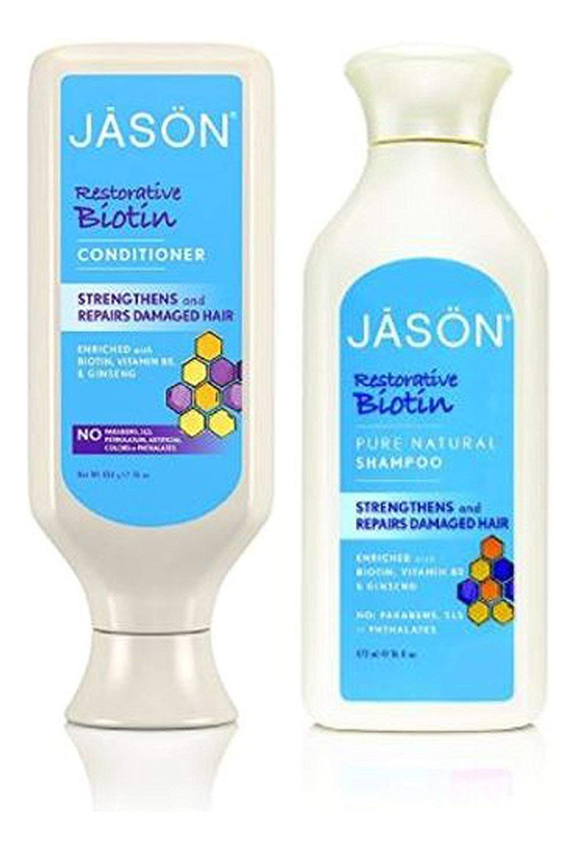 Este pacote inclui um shampoo de biotina JASON e um condicionador de biotina JASON, cada frasco tem 16 fl. oz. Sobre o shampoo de biotina Nosso shampoo restaurador limpa suavemente enquanto restaura a força saudável dos cabelos fracos e danificados. As propriedades espessantes da biotina e da vitamina B5s revitalizam a elasticidade dos cabelos. Extratos de ginseng e lavanda ajudam a reparar pontas duplas e minimizar futuras quebras. Fortalecido com energia, seu cabelo parece mais saudável e fica mais forte. Sobre o condicionador de biotina Nosso condicionador restaurador hidrata suavemente enquanto fortalece e repara cabelos fracos e danificados. A biotina e a vitamina B5 revitalizam a vitalidade e a elasticidade. O óleo de semente de jojoba nutre profundamente o cabelo, enquanto os extratos de ginseng e lavanda ajudam a reparar pontas duplas e minimizar futuras quebras. Enriquecido com energia, seu cabelo parece mais saudável e fica mais forte. – Este pacote inclui um xampu de biotina JASON e um condicionador de biotina JASON, cada frasco tem 16 fl. oz. – Shampoo e condicionador orgânicos para homens e mulheres com propriedades espessantes, incluindo biotina, vitamina B5, Vitamina E, óleo de semente de jojoba e ingredientes de shampoo e condicionador de camomila. – Ingredientes de xampu de toranja em JASON O shampoo de biotina ajuda a fortalecer e reparar cabelos fracos e danificados. – O shampoo e condicionador Volume para homens e mulheres é totalmente isento de sulfato, sem parabenos e vegano.