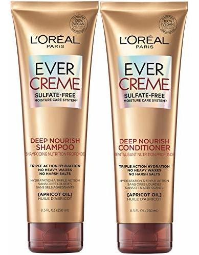 LOreal Paris Sulfate Free Shampoo and Conditioner for Dry Hair, Triple Action Hydration for Dry, Brittle or Color Treated Hair, Apricot Oil Infused Hair Care, EverPure, 8.5 Fl Oz, Set of 2 – Sulfate Free Shampoo and Conditioner For Dry Hair: EverPure Deep Nourish Shampoo and Conditioner Set gently cleanses dry, brittle hair with deep moisture for silky-soft texture and shine without weigh down; Hair looks healthier after the 1st use – Nourish Dry Hair: Dry, damaged, and color-treated hair requires special care, and this shampoo and conditioner for dry hair is especially gentle, featuring apricot oil with a rich aromatic fragrance. This formula wont strip hair or dull its color – The EverPure Deep Nourish System: For best results, use EverPure shampoo and conditioner in tandem, for a nourishing hair care system that deeply hydrates and softens hair – Vegan Shampoo and Conditioner: EverPure hair products have the purest respect for your hair and have been formulated without sulfates, parabens, DMDM hydantoin, added phthalates, dyes and gluten ingredients. Always color caring and powered by science – LOreal Paris Innovation: We are a total beauty care company that combines the latest in technology with the highest in quality for the ultimate in hair color, hair care, hair style, skin care and cosmetics