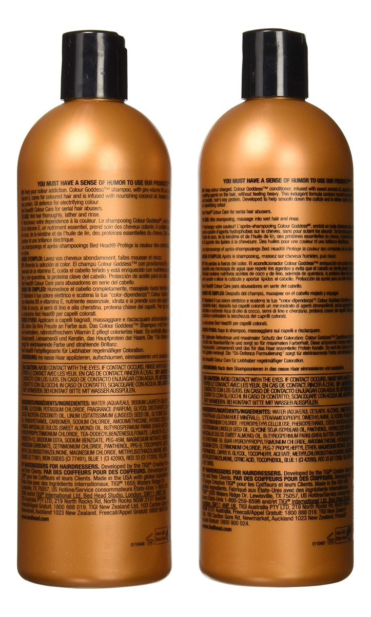 Duo Tigi Bed Head Colour Goddess de 25,36 onças — Refresca e limpa o cabelo, removendo o acúmulo para otimizar a vibração da cor — Suaviza e dá brilho ao cabelo, dando-o vivo — O cabelo é mais resistente à quebra durante a escovação, o que significa menos pontas quebradas, o que pode fazer com que a cor pareça opaca e lisa — Infundido com óleo nutritivo de amêndoa doce, óleo de coco e queratina, proteína essencial do cabelo — Defesa do óleo para uma cor eletrizante