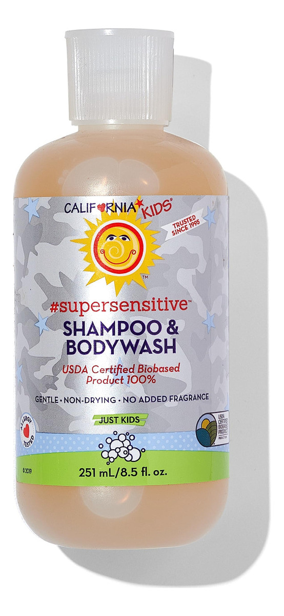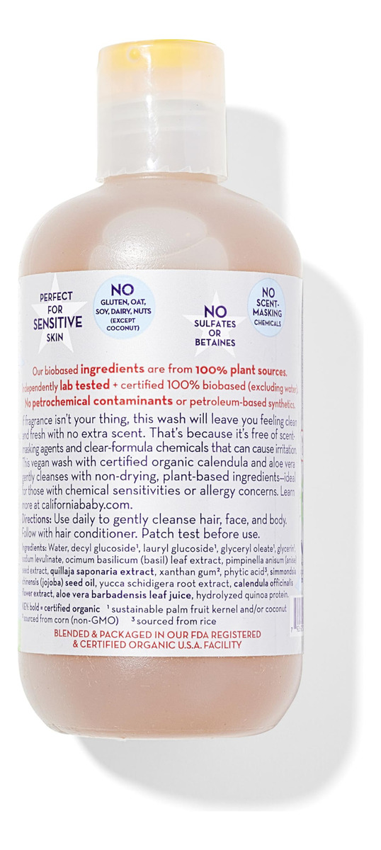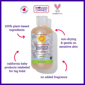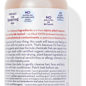 Shampoo e sabonete líquido supersensíveis California Baby — cabelo, rosto e corpo | Suave, sem fragrância, testado para alergias | Pele seca e sensível, 8,5 onças.