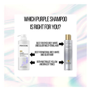 Pantene Silver Expressions, xampu e tônico de cabelo roxos, Pro-V para cabelos grisalhos e tingidos, flores de lótus, 17,9 fl oz — Reduz o embotamento: torna os cinzentos lindamente prateados e ilumina os brancos, reduzindo o embotamento e eliminando tons de bronzeado (reduz o embotamento versus um xampu não condicionador) – PIGMENTO ROXO: mantém seus fios prateados neutralizando o excesso de amarelo causado pelo meio ambiente – Estilo saudável: proporciona saúde cabelo bonito com uma fórmula 100% livre de parabenos e silicone — LEVEMENTE PERFUMADO: infunde suas madeixas com notas frescas , luxuosa flor de lótus — COMO USAR: Massageie o cabelo diariamente, certificando-se de atingir as áreas mais sujas, e deixe descansar por 3-5 minutos antes de enxaguar