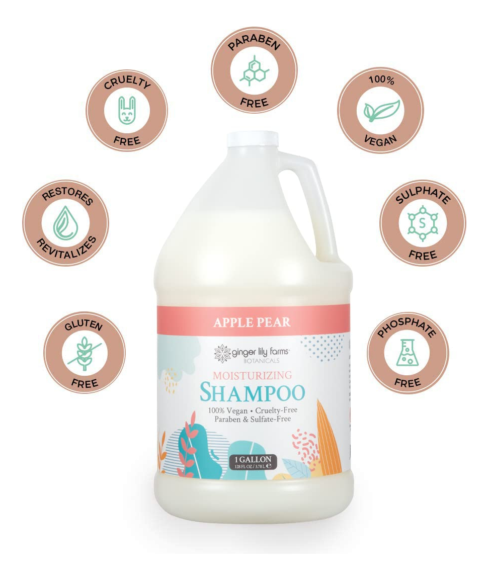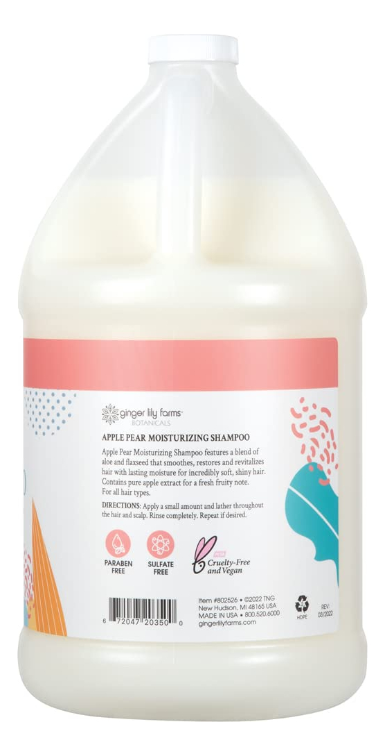 Shampoo hidratante Ginger Lily Farms Botanicals para todos os tipos de cabelo, 100% vegano e livre de crueldade, aroma de maçã e pera, refil de 1 galão (128 fl oz) — Shampoo hidratante: suaviza, restaura e revitaliza instantaneamente os cabelos secos com umidade duradoura para cabelos incrivelmente macios e brilhantes. Adequado para todos os tipos de cabelo. – Delicioso aroma de maçã e pera: infundido com extratos puros de maçã e pera para deixar seu cabelo com um cheiro deliciosamente limpo. – Ingredientes de origem natural: enriquecido com nossa mistura especial de vitaminas, óleos essenciais puros e extratos botânicos para reter a umidade e nutrir os cabelos secos. A fórmula livre de toxinas não contém parabenos, sulfato, fosfato e glúten. – Cuidados com os cabelos sem crueldade: o Ginger Lily Farms Botanicals é certificado pela PETA, 100% vegano e nunca foi testado em animais para que você possa se sentir bem ao usá-lo. – Econômico e ecológico: o tamanho do refil ajuda a reduzir o consumo de plástico e é perfeito para reabastecer barras traseiras de salão ou reabastecer dispensadores de chuveiro em vestiários, hotéis, spas ou em casa. 1 galão (128 fl. oz.)