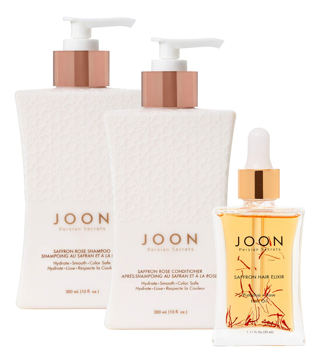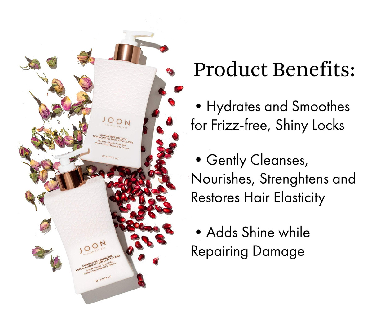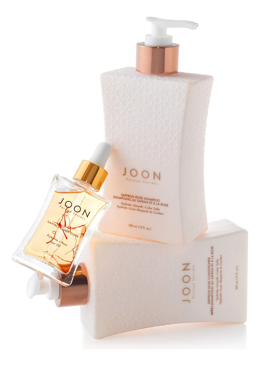 Elixir de cabelo com açafrão: os persas usam açafrão, pistache e rosa em rituais de beleza há séculos. O açafrão, um tempero que vale mais do que seu peso em ouro, é usado para fortalecer o cabelo. O pistache promove ácidos graxos, proteínas e vitaminas que nutrem e hidratam para um cabelo macio e elástico. Adorada na poesia e na arte persas, a rosa é usada há muito tempo para ajudar na reparação do cabelo. Esses ingredientes exclusivos, agora combinados pela química moderna, dão um impulso potente ao seu cabelo. O shampoo e condicionador Joon Saffron Rose aproveitam o poder da química moderna e dos rituais de beleza persas para restaurar o cabelo ao seu estado mais saudável, hidratando e suavizando os fios. Cada um de nossos produtos mais novos apresenta a poderosa mistura antioxidante de açafrão, rosa, pistache e romã da Joon, que nutre, fortalece e restaura a elasticidade do cabelo; cuja mistura exclusiva de proteínas, pantenol e vitamina E dá brilho, repara os danos causados por poluentes ambientais e ajuda a reverter os efeitos nocivos das ferramentas de modelagem a quente. – Nossos produtos favoritos em um conjunto completo: xampu de 10,1 onças, 10,1 onças Condicionador de 1 onça, elixir capilar de 1,11 onça — Cuidado capilar hidratante e nutritivo que deixa o cabelo mais macio, forte e saudável. — Seguro para cabelos coloridos e quimicamente cabelo tratado.