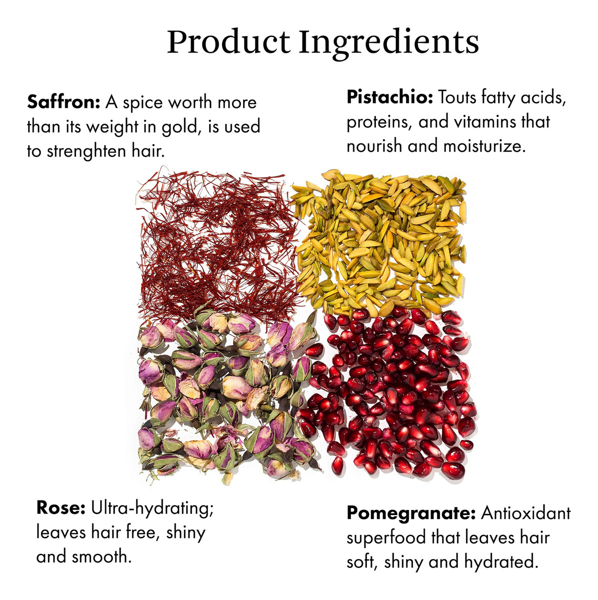 Saffron Rose Shampoo, Saffron Rose Conditioner, Saffron Hair Elixir |