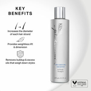 Shampoo espessante Kenra Platinum | Fornece nutrição e brilho | Aumenta a espessura e o volume | Corpo e plenitude | Protege contra a umidade | Todos os tipos de cabelo | 8,5 fl. Oz – Aumenta o diâmetro de cada fio de cabelo – Oferece leveza e dimensão – Remove o acúmulo e o excesso de oleosidade que sobrecarregam os estilos – Seguro de cor – Formulado sem adição de sulfatos SLS/SLES*, parabenos e cloreto de sódio