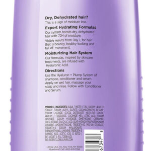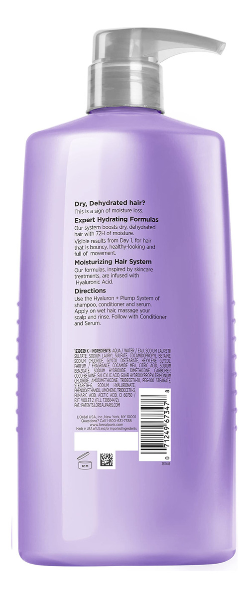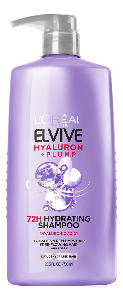 Shampoo hidratante L'Oreal Paris Elvive Hyaluron Plump para cabelos desidratados e secos, com infusão de complexo de tratamento de ácido hialurônico, sem parabenos, 26,5 fl oz – 72H de hidratação intensa: o shampoo hidratante limpa suavemente, hidrata instantaneamente e repõe o cabelo seco por até 72 horas, sem pesar, quando usado com o sistema Hyaluron Plump Hair Care. Shampoo hidratante para cabelos saltitantes, brilhantes e soltos – Produtos capilares inspirados nos cuidados com a pele: formulados por especialistas com o complexo de tratamento hialurônico para repor a umidade e fornecer 72 horas de hidratação. Da marca número 1 de soros para cuidados com a pele – L'Oreal. Recém perfumado com frutas vermelhas, flor de cerejeira, baunilha e sândalo – Rotina de hidratação para cabelos secos e desidratados: limpe suavemente com o shampoo Elvive sem parabenos, aplique com Flash Hydration Water e aplique o condicionador de cabelo para desembaraçar e hidratar. Finalize com sérum revolumante para revitalizar o cabelo – Soluções personalizadas para todos os tipos de cabelo: de tratamentos capilares, máscaras e séruns formulados por especialistas a condicionadores nutritivos sem enxágue e xampus e condicionadores que desafiam o frizz, temos o que você precisa – Inovação da L'Oreal Paris: Somos uma empresa de cuidados de beleza total que combina a mais recente tecnologia com a mais alta qualidade para obter o máximo em cor de cabelo e cuidados com o cabelo, estilo de cabelo, cuidados com a pele e cosméticos