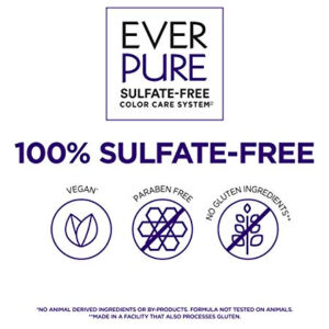 O shampoo EverPure Purple Brass Toning Purple com hibisco e tintura roxa neutraliza os tons de amarelo acastanhado a laranja, mantendo o cabelo hidratado. A fórmula foi projetada para funcionar em todas as morenas loiras, descoloridas, com mechas e cabelos prateados. 100% livre de sulfato, sem parabenos, sem sais agressivos e vegana. Sem ingredientes ou subprodutos de origem animal. Fórmula não testada em animais.
