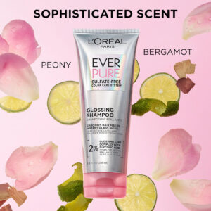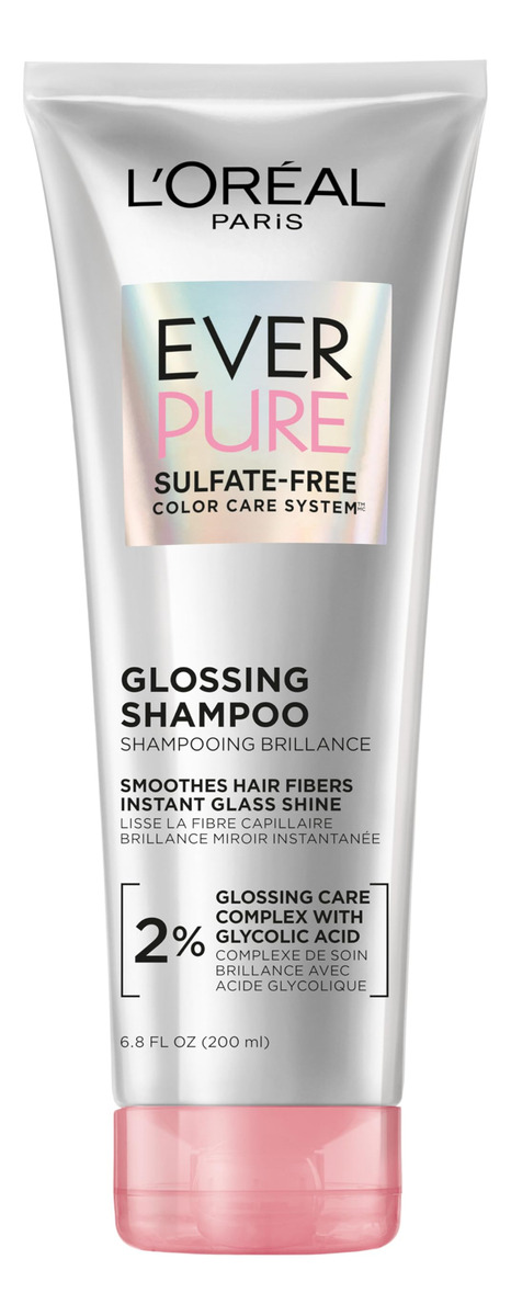 Shampoo sem sulfato brilhante L'Oreal Paris com ácido glicólico, cuidado capilar para brilho e maciez duradouros para cabelos opacos e secos, EverPure, 6,8 fl oz