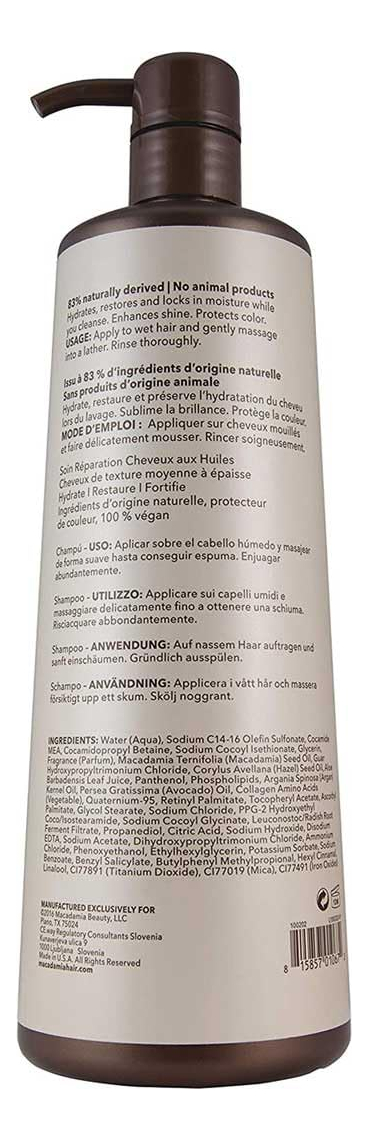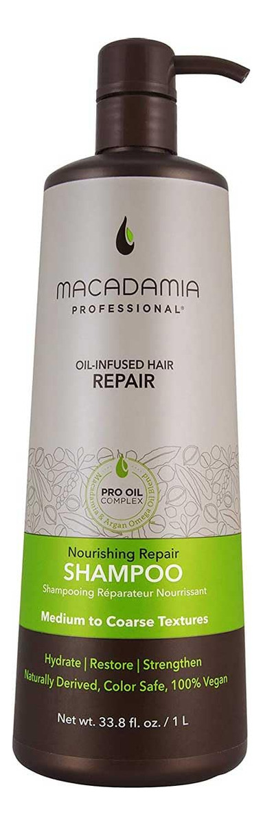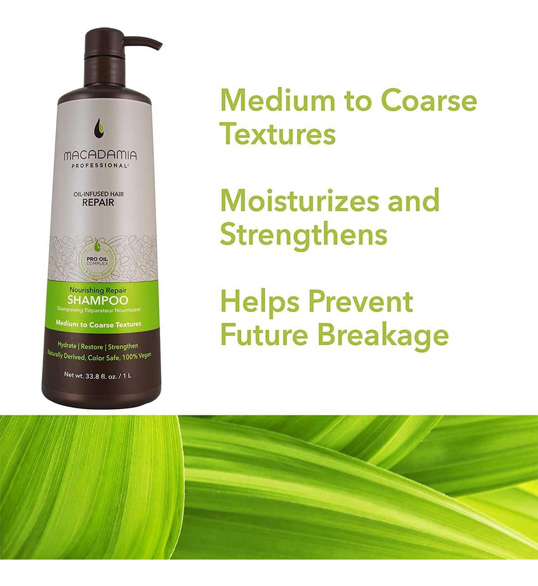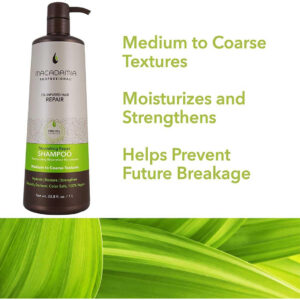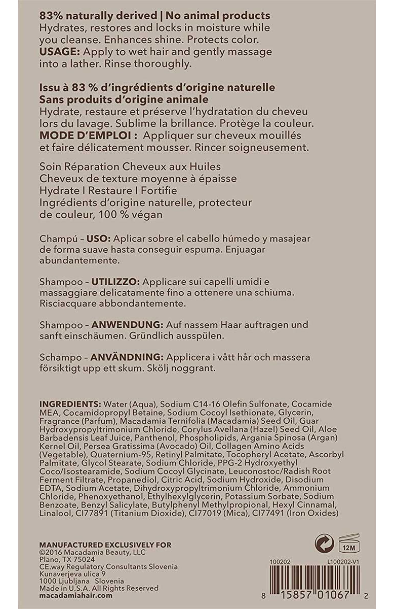 Shampoo reparador nutritivo de 33,8 onças de óleo de macadâmia profissional de macadâmia e óleo de argan para hidratação, brilho e proteção da cor – Umidade – Xampu – Nutritivo