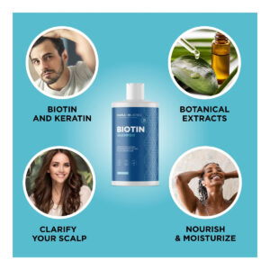 Dê ao seu cabelo e couro cabeludo o cuidado que eles merecem com nosso shampoo nutritivo com ingredientes ricos em nutrientes. Acreditamos no poder dos óleos essenciais e é por isso que cada uma de nossas fórmulas de xampu contém óleos essenciais de limpeza, hidratação e purificação para o cuidado do cabelo e couro cabeludo. Embora tenhamos orgulho de incluir muitos ingredientes naturais em nossos xampus de limpeza, também nos orgulhamos de ser exclusivamente livres de parabenos e sulfatos. Como resultado, nossos shampoos são todos seguros de cor e ideais para adultos de todas as idades. Experimente nosso shampoo hoje e aproveite os benefícios da aromaterapia dos óleos naturais e o poder de limpeza dos óleos essenciais para ajudar a transformar seu cabelo. – Dica de crescimento capilar – uma das melhores maneiras de combater a queda de cabelo é descartar o shampoo artificial de crescimento capilar com sulfatos prejudiciais e escolher um shampoo com ingredientes naturais mais suaves – Shampoo de biotina para homens e mulheres – Melhore seus cabelos finos com nosso shampoo para queda de cabelo com biotina e óleo de coco que funciona para nutra seu cabelo com vitaminas B para uma aparência mais volumosa – Shampoo sem sulfato – Nós apresentamos alguns dos melhores produtos naturais para o cuidado do cabelo em nosso xampu hidratante de biotina com alecrim para cabelos finos e sem parabenos, cores e fragrâncias artificiais – Shampoo para couro cabeludo seco – Experimente nosso shampoo de biotina e óleo de coco para cuidar de um couro cabeludo menos escamoso com vitaminas nutritivas de biotina e veja como nossa fórmula hidratante para couro cabeludo pode melhorar sua aparência – Cuidados capilares premium – Escolha com responsabilidade com nosso shampoo de biotina e produtos para cabelo, como nosso aprimorado shampoo volumoso com óleos naturais e biotina, vitaminas capilares para um banho nutritivo e hidratante