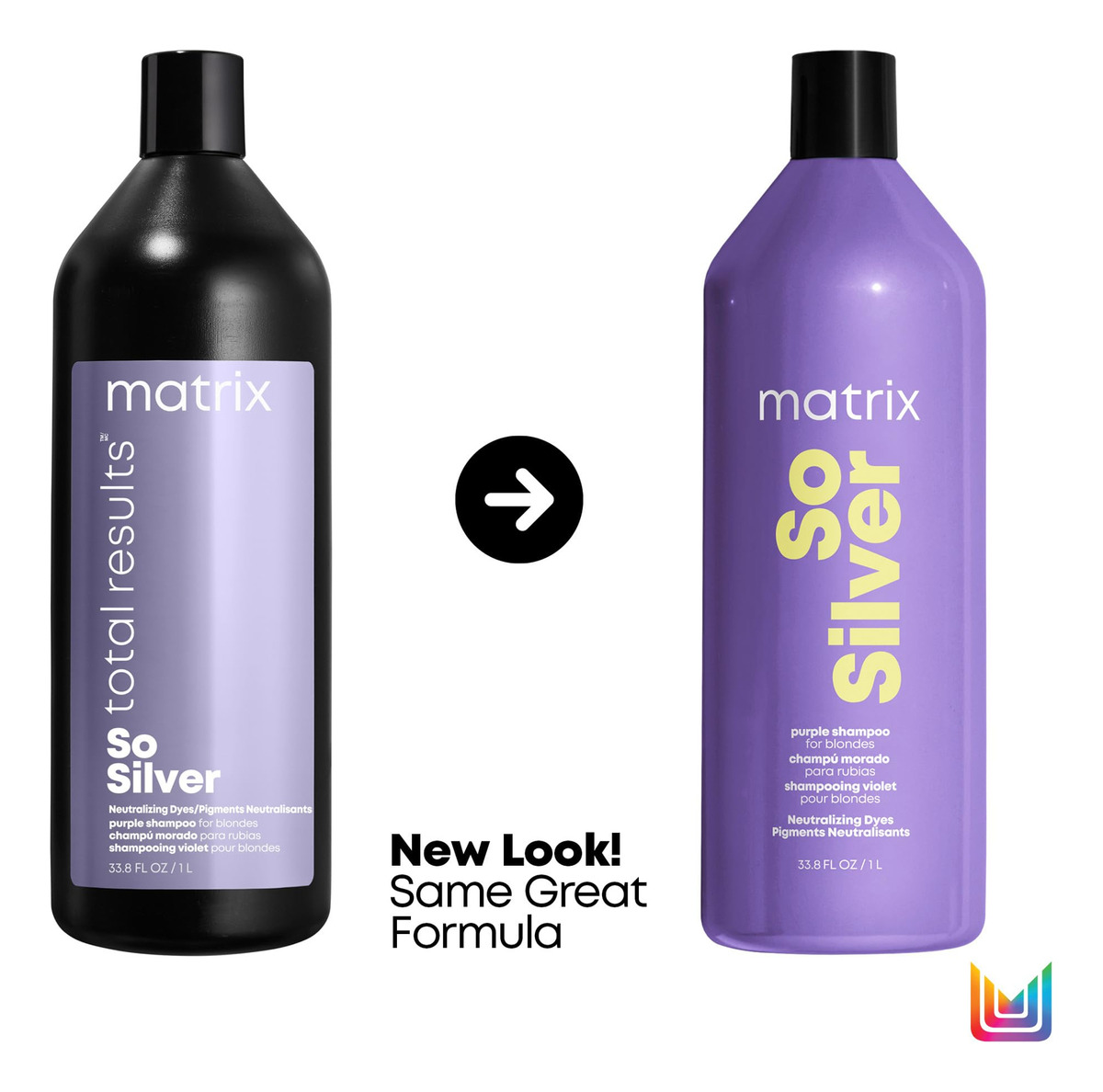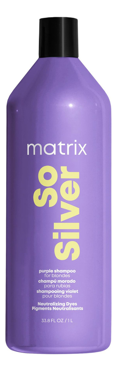 Shampoo Matrix So Silver Purple | Neutraliza tons de amarelo | Deposita e tonifica a cor | Para cabelos tingidos, loiros, grisalhos e platinados | A embalagem pode variar | 33,8 ml. Oz. | Vegan – Shampoo tonificante roxo: o shampoo depositante de cor prateada neutraliza tons amarelos indesejados em todos os cabelos loiros, cinza platinado e prateado. Remove o calor indesejável e elimina tons opacos – Fórmula hidratante: ilumina as mechas das loiras e adiciona brilho cintilante aos cabelos naturais e tratados com cores. Perfeito para loiras claras ou geladas que desejam restaurar, reparar e hidratar – Principais benefícios: deposita o pigmento violeta, neutraliza os tons quentes e bronzeados e elimina os tons amarelos opacos sem descascar a cor, enquanto reidrata os cabelos secos com mais umidade e cuidado com a cor – Uso sugerido: use luvas adequadas, aplique nos cabelos molhados, ensaboe, enxágue e repita se necessário e conforme necessário. Para obter o máximo de benefícios, deixe agir por cinco minutos para tonificar e limpar. Siga com o regime – Coleção So Silver: use o condicionador So Silver com benefícios hidratantes extras com shampoo tonificante e spray tonificante So Silver para melhorar a neutralização entre os usos e as visitas profissionais ao salão de beleza