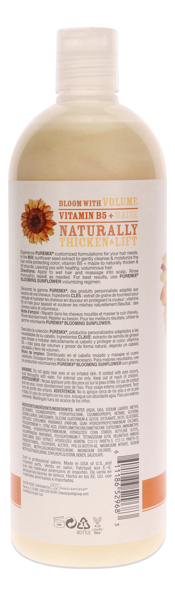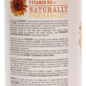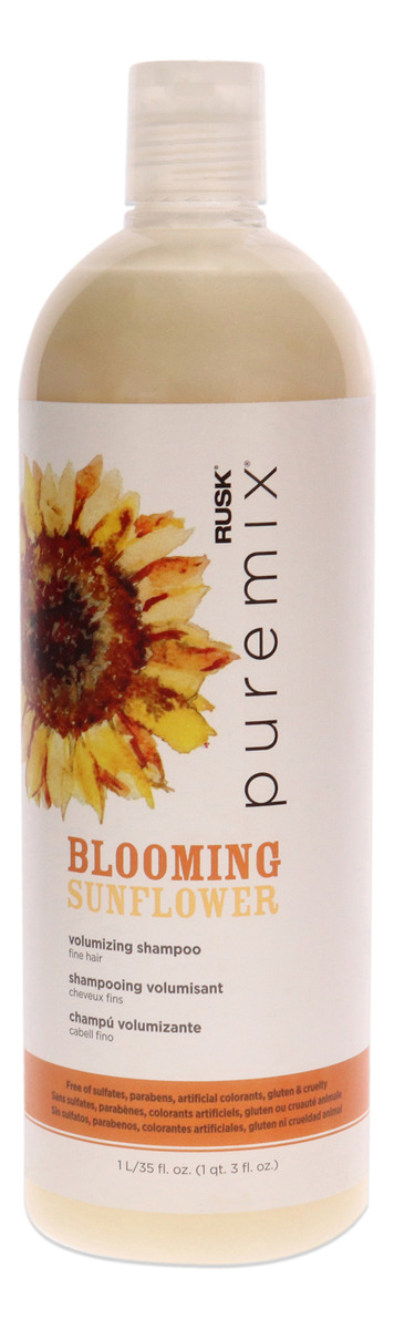 Rusk puremix blooming sunflower shampoo is enriched with sunflower seed extract to gently cleanse and moisturize hair while protecting color, and vitamin b5 plus maize to naturally thicken and lift strands.