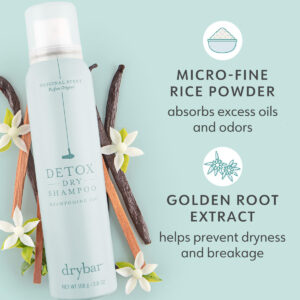 Perfume original do xampu seco Drybar Detox — tamanho real | Absorve o excesso de óleo, deixa o cabelo limpo e revigorado com volume extra, todos os tipos de cabelo — A fórmula superabsorvente elimina óleos e impurezas, deixando o cabelo limpo e revigorado com volume extra e acabamento fosco. – Os pós de arroz microfinos absorvem o excesso de óleos e odores. À medida que são absorvidos, eles se tornam translúcidos para se misturar naturalmente com todas as cores de cabelo e se expandir para dar sustentação às raízes. – O extrato de raiz dourada aumenta a umidade para evitar ressecamento e quebra. – Perfume original com notas de jasmim, sândalo e baunilha de Madagascar. – Sem parabenos, sulfatos ou ftalatos. Livre de crueldade, sem testes em animais.
