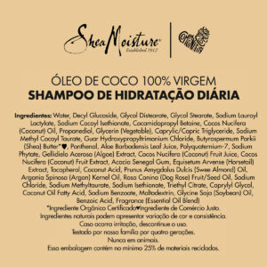 SheaMoisture daily shampoo 100% virgin coconut oil, daily hydration. Gentle cleansing, new delicious formula with nourishing and moisturizing ingredients. Without sulfate, parabens and cruelty free, 384ml.