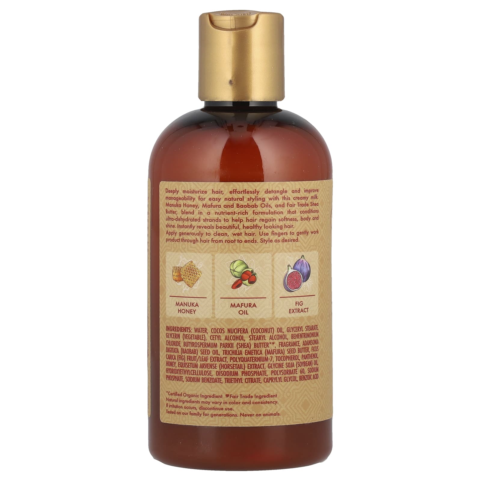Com este leite cremoso, hidrate profundamente os cabelos, desembarace os cabelos sem esforço e melhore a maleabilidade para um penteado natural e fácil. O Mel de Manuka, os Óleos de Mafureira e de Baobá e a Manteiga de Karité de Comércio Justo misturam-se em uma formulação rica em nutrientes que condiciona os fios ultradesidratados para ajudar a recuperar a maciez, o corpo e o brilho. Revela instantaneamente cabelos bonitos e com aparência saudável.