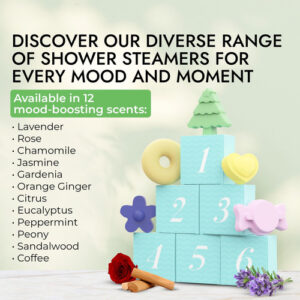 – Aromas para recarregar sua mente – Aproveite esses favoritos do vapor de banho para melhorar o humor: laranja cítrica e gengibre levam sua mente a um estado de felicidade, ideal para presentes femininos de autocuidado. A peônia melhora a função cognitiva e a memória. A camomila acalma sua mente e deixa você se sentindo sereno.