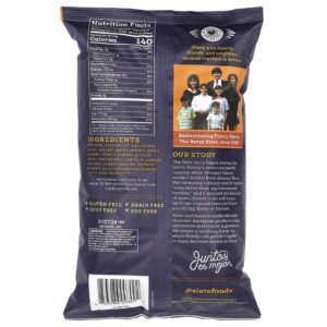Batatas, óleo de abacate, fermento nutricional, sal marinho, alho em pó, cebola em pó, tomate em pó, tâmaras moídas, beterraba em pó, chili vermelho em pó, pó de serrano, páprica, urucum em pó, cogumelo porcini em pó, ácido cítrico, ácido láctico.