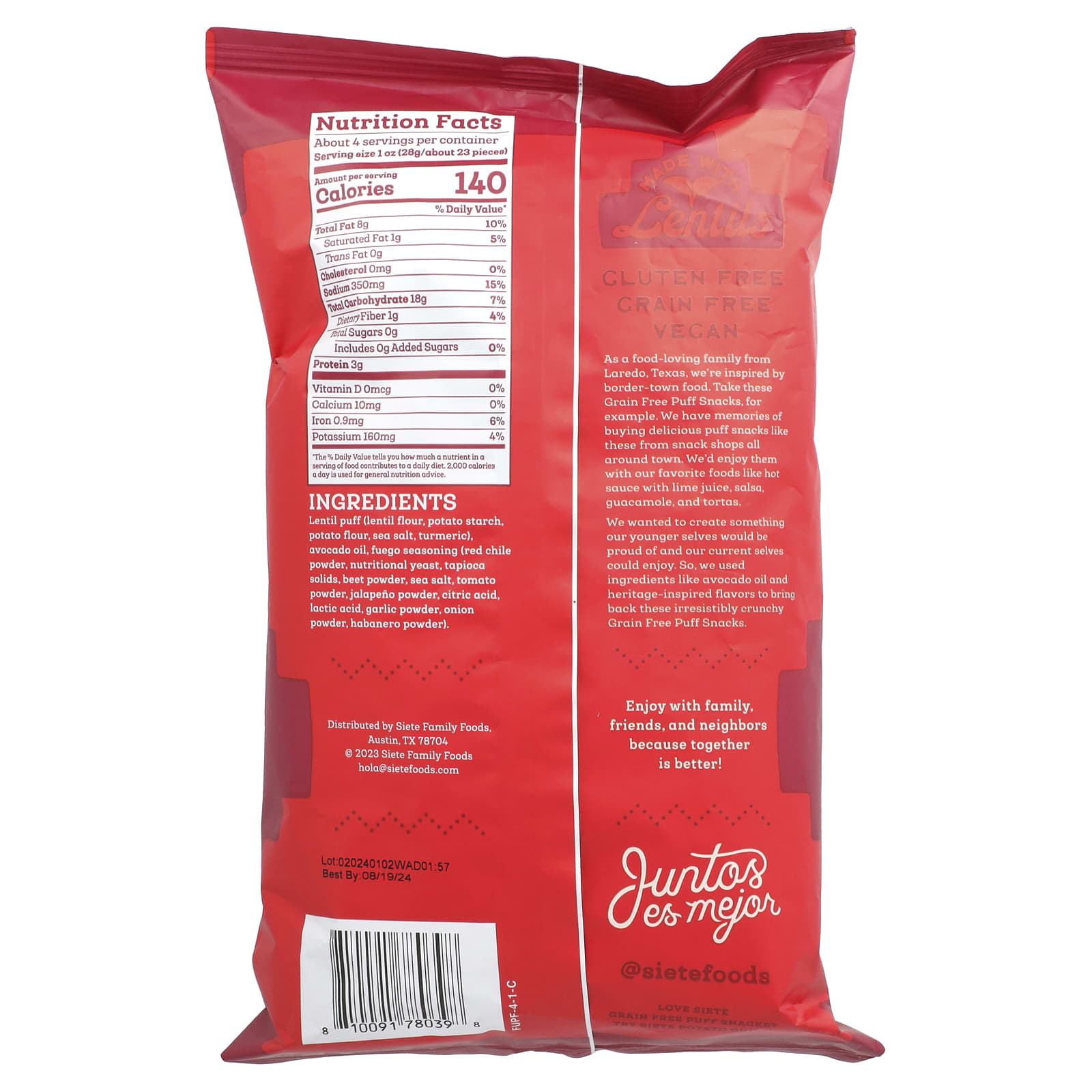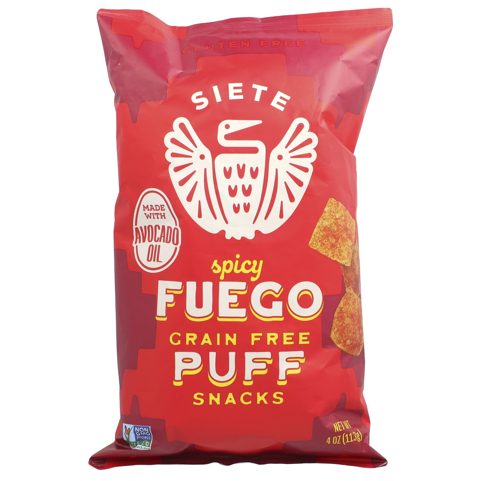 Siete Biscoitos Puff sem Grãos Fuego Picante 113 g (4 oz) – Siete Alimentos Petiscos e lanches Snacks crocantes Puffs.