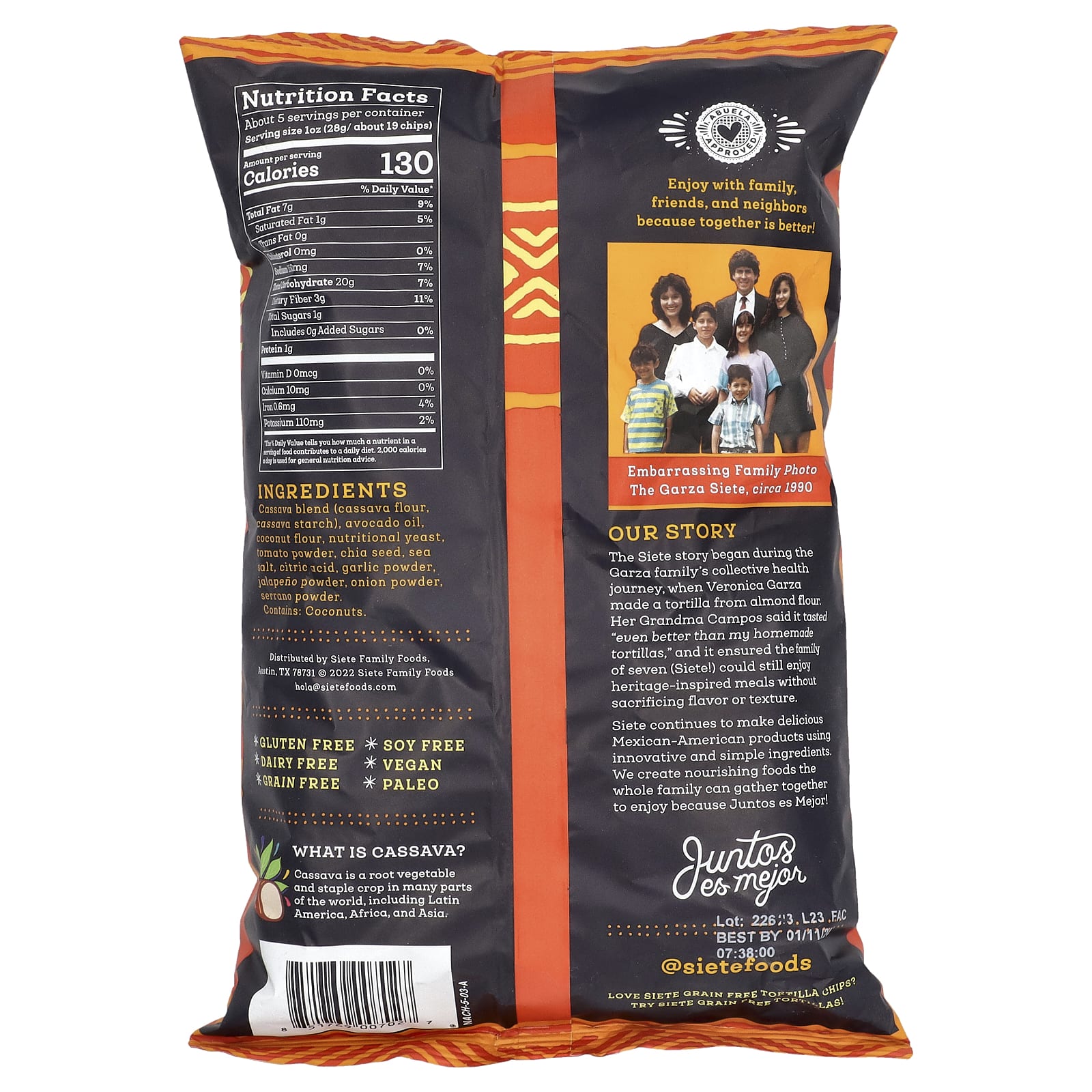 Siete Tortilhas sem Grãos Nacho 142 g (5 oz) – Siete Alimentos Petiscos e lanches Snacks crocantes.