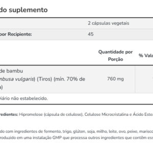 Sua composição contém sílica de bambu, um ingrediente de origem natural cuidadosamente selecionado. Cada cápsula é desenvolvida para atender a necessidades específicas de forma prática e eficiente. Validade longa
