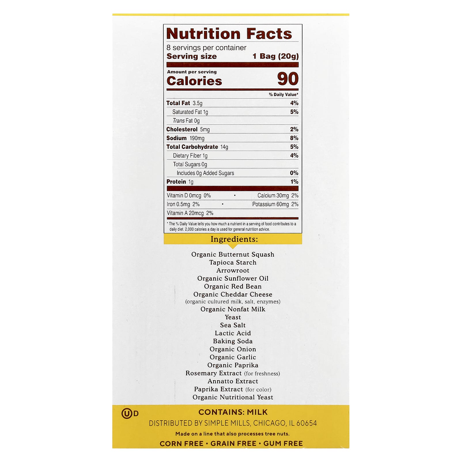 Simple Mills Biscoitos Assados para Lanche PopMmms™ Queijo Cheddar 8 Pacotes 20 g (07 oz) Cada – Simple Mills Alimentos Petiscos e lanches Biscoitos salgados.