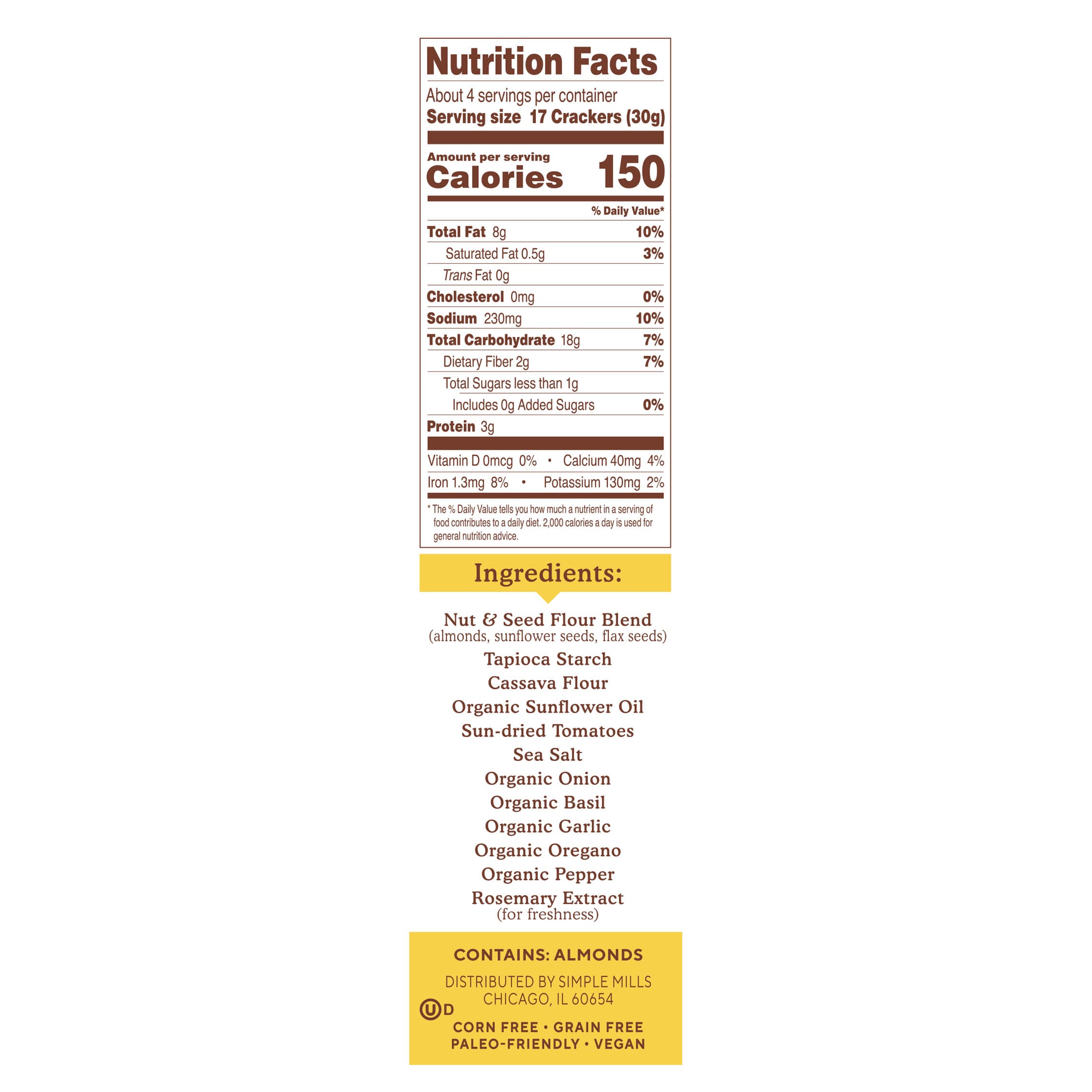 Simple Mills Biscoitos Cracker de Farinha de Amêndoas Naturalmente Sem Glúten Tomate Seco e Manjericão 120 g