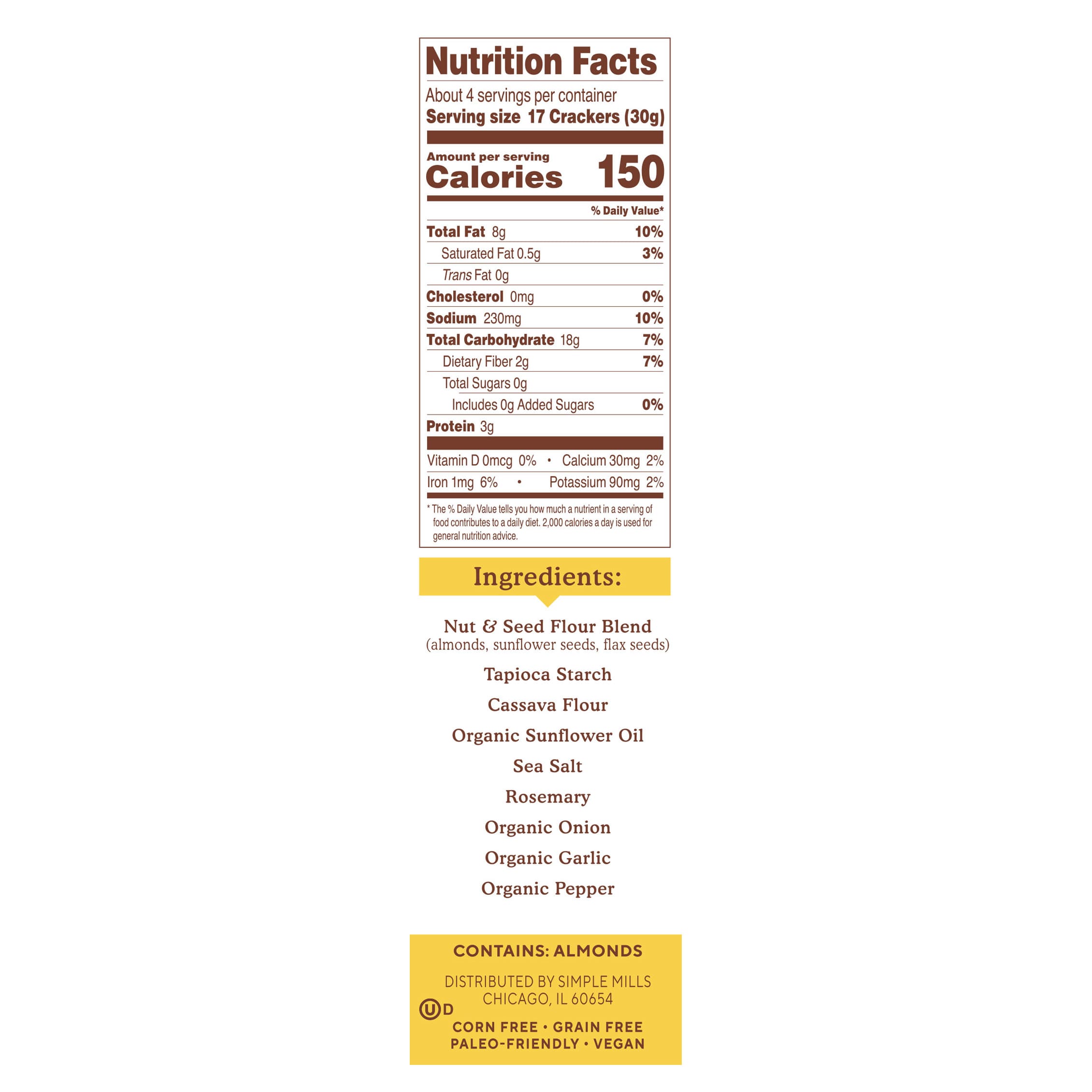Simple Mills Bolachas de Farinha de Amêndoa Alecrim e Sal Marinho 120 g (425 oz) – Simple Mills Alimentos Petiscos e lanches Biscoitos salgados.