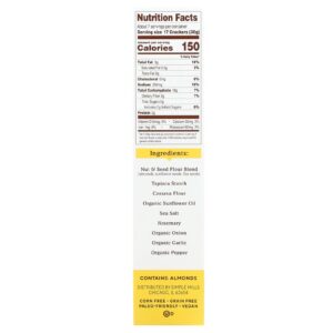 Simple Mills Bolachas de Farinha de Amêndoa Alecrim e Sal Marinho 199 g (7 oz) – Simple Mills Alimentos Petiscos e lanches Biscoitos salgados.