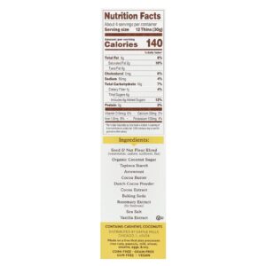 Mistura de farinha de sementes e castanhas (melancia, castanha-de-caju, girassol, linhaça), açúcar de coco orgânico, amido de tapioca, araruta, manteiga de cacau, cacau holandês em pó, extrato de cacau, bicarbonato de sódio, extrato de alecrim (para proporcionar frescor), sal marinho, extrato de baunilha.