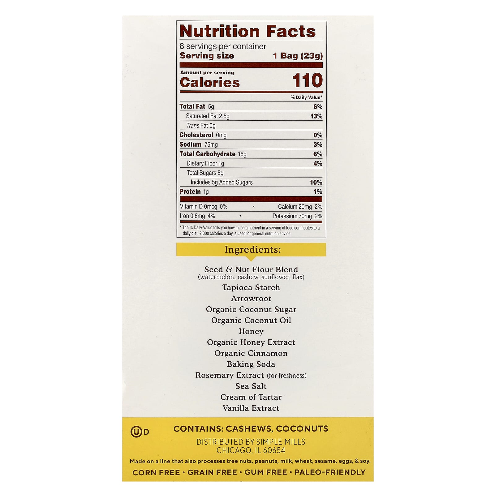 Simple Mills Farinha de Sementes e Nozes Sweet Thins® Mel e Canela 8 Pacotes 23 g (08 oz) Cada – Simple Mills Alimentos Petiscos e lanches Cookies Biscoitos salgados.