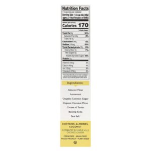 Farinha de amêndoas, araruta, açúcar de coco orgânico, farinha de coco orgânica, creme de tártaro, bicarbonato de sódio, sal marinho.