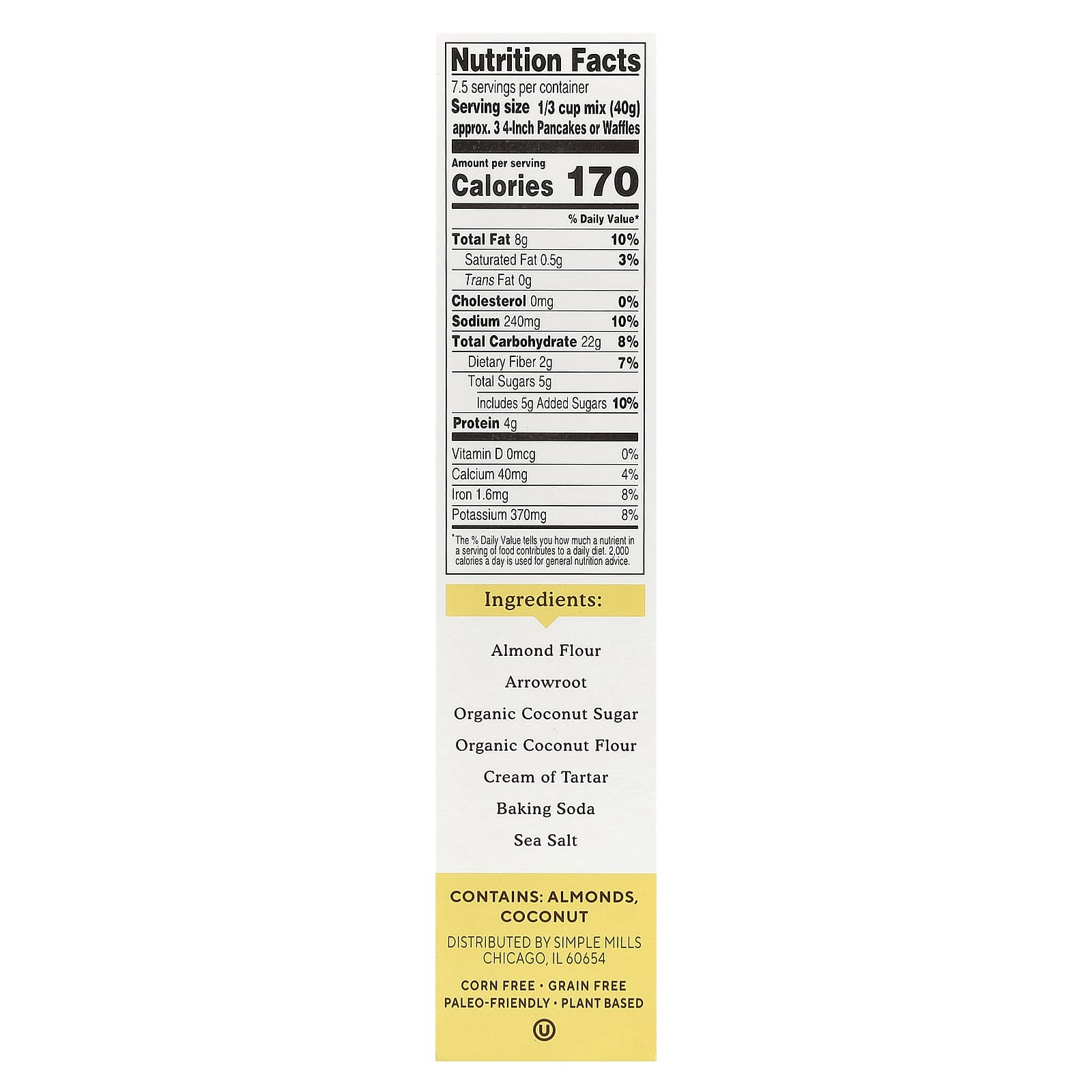 Simple Mills Mistura de Farinha de Amêndoa para Waffle e Panqueca Original 303 g (107 oz) – Simple Mills Alimentos Fermentos, farinhas e misturas Mistura para panqueca e waffle.