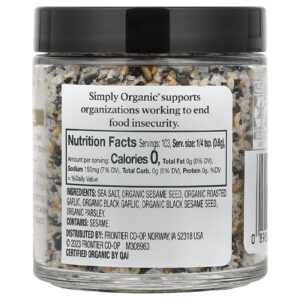 O nutritivo e picante alho preto orgânico conta com a ajuda das sementes de gergelim orgânico e sal marinho gourmet para criar um tempero que eleva o sabor umami a novos patamares.