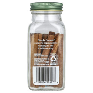 Cada Bastão de Canela Simply Organic contém 2 3/4 de polegadas de canela Korintje orgânica (Cinnamomum burmannii) pura e orgânica de classe AA. Sabor levemente doce e clássico da canela. Sabor suave, para aqueles momentos em que você quer apenas o conforto do sabor suave de canela.