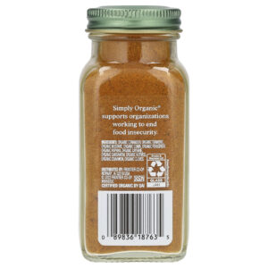 O Curry em Pó Simply Organic® é uma mistura de onze especiarias orgânicas de alta qualidade e nada mais. Intensa cor marrom dourado. Aroma picante e levemente adocicado. Sabor intenso, terroso, quente e picante, com uma leve, mas distinta sensação de calor.